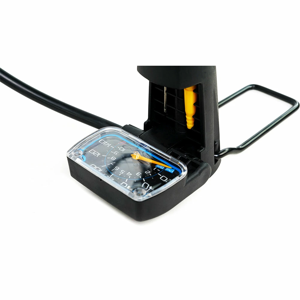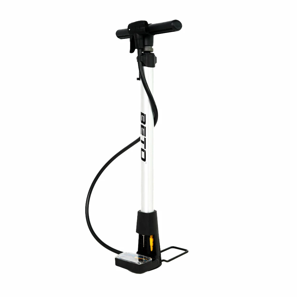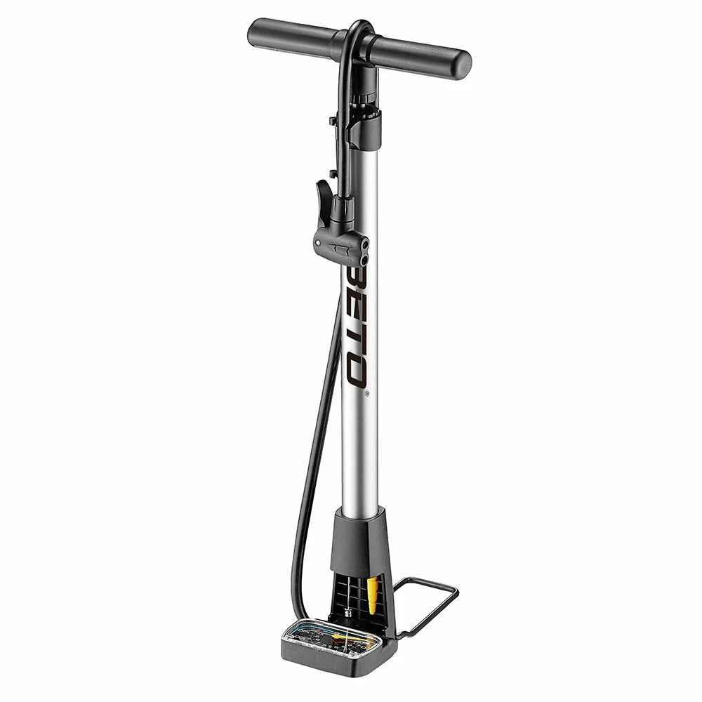 For precise inflation, BETO Alloy Floor Pump has a built-in, industrial-grade tire pressure gauge for easy reading.