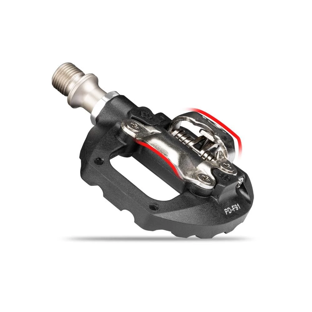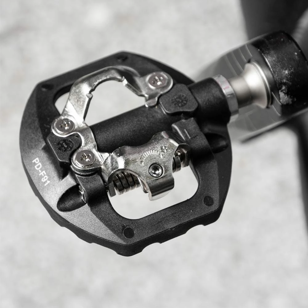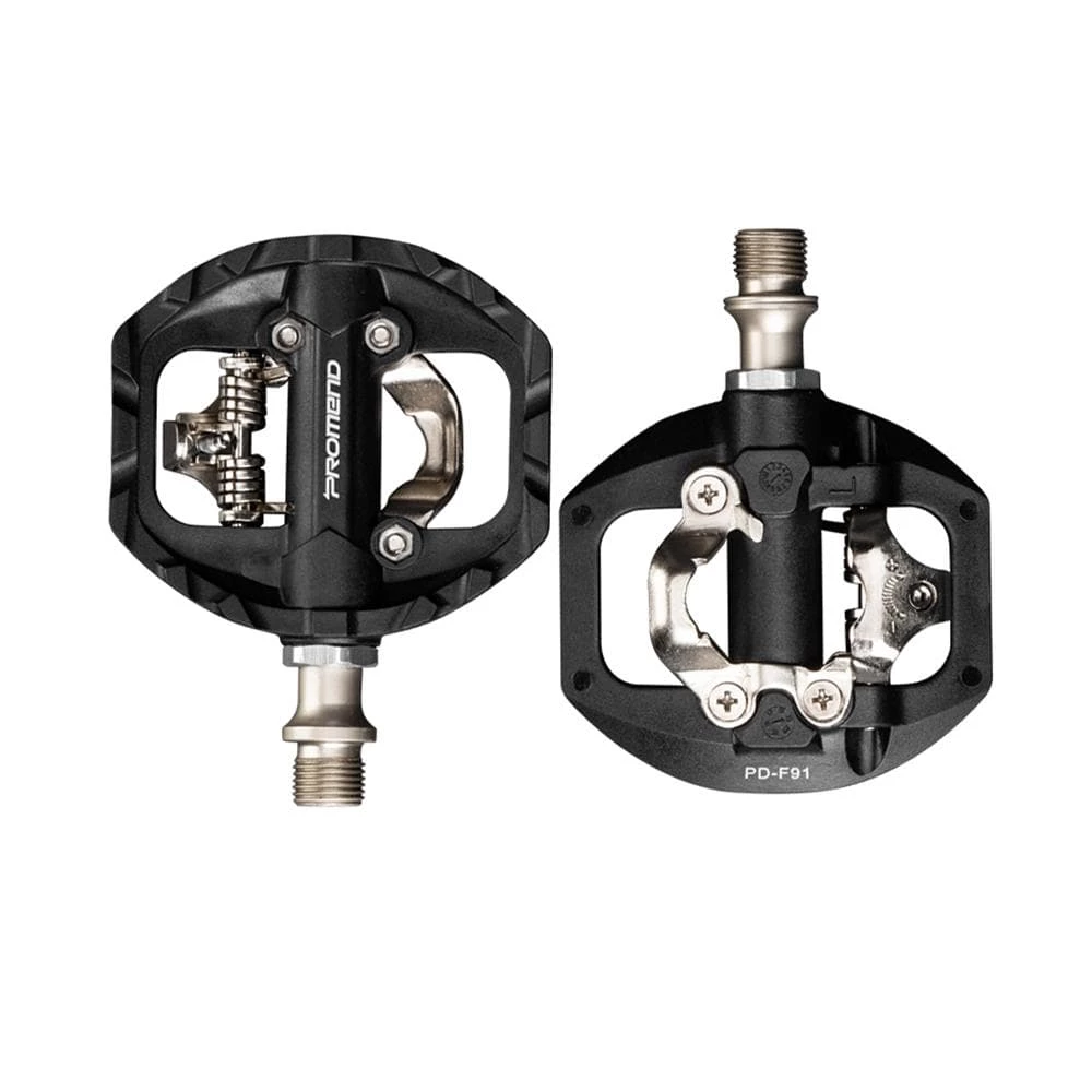 Improve your pedalling efficiency with Promend Dual Side Clipless Pedal. Built with an SPD system, it has a mechanism that locks it to a cleat screwed into the bottom side of the shoe so you can pedal with greater efficiency and stability.