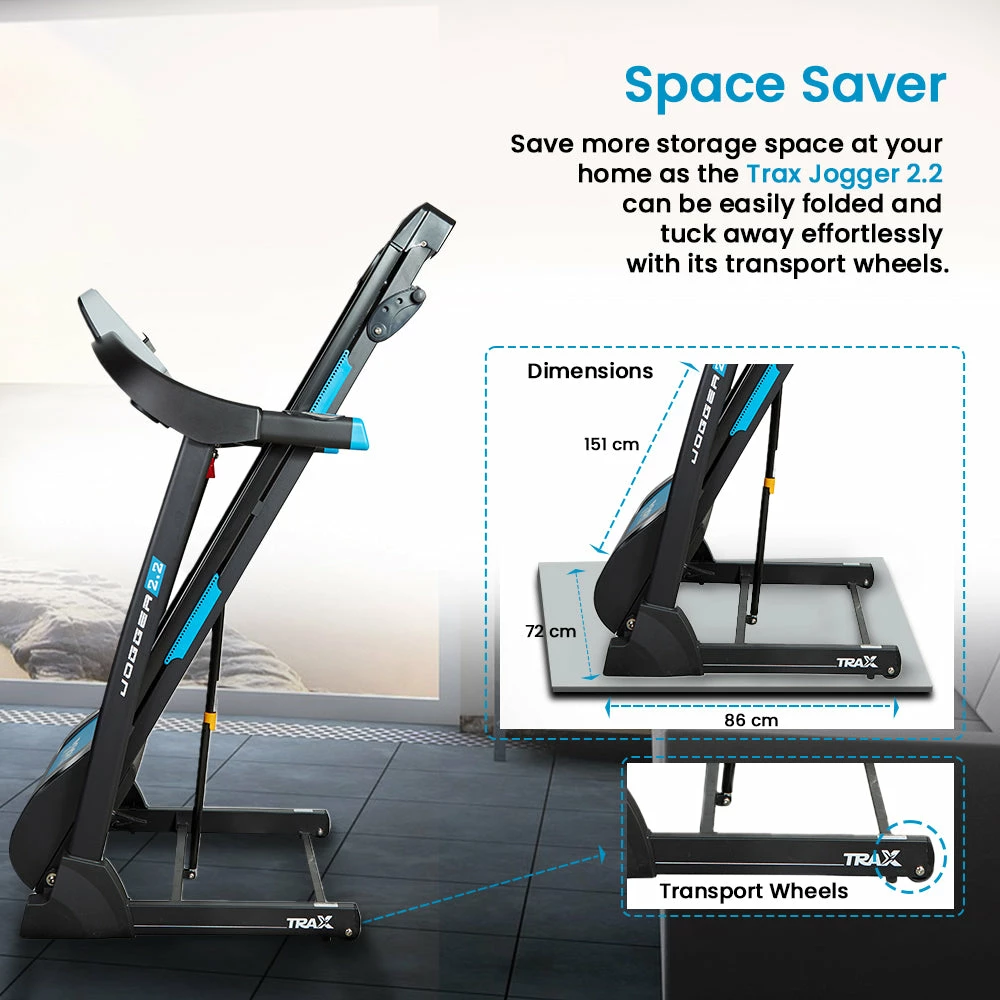 Get fit and achieve your fitness goals using the Trax Jogger 2.2. With its compact and foldable design, this space saver treadmill lets you exercise comfortably at your home. Experience a better cardio workout with Trax Jogger 2.2 Treadmill.