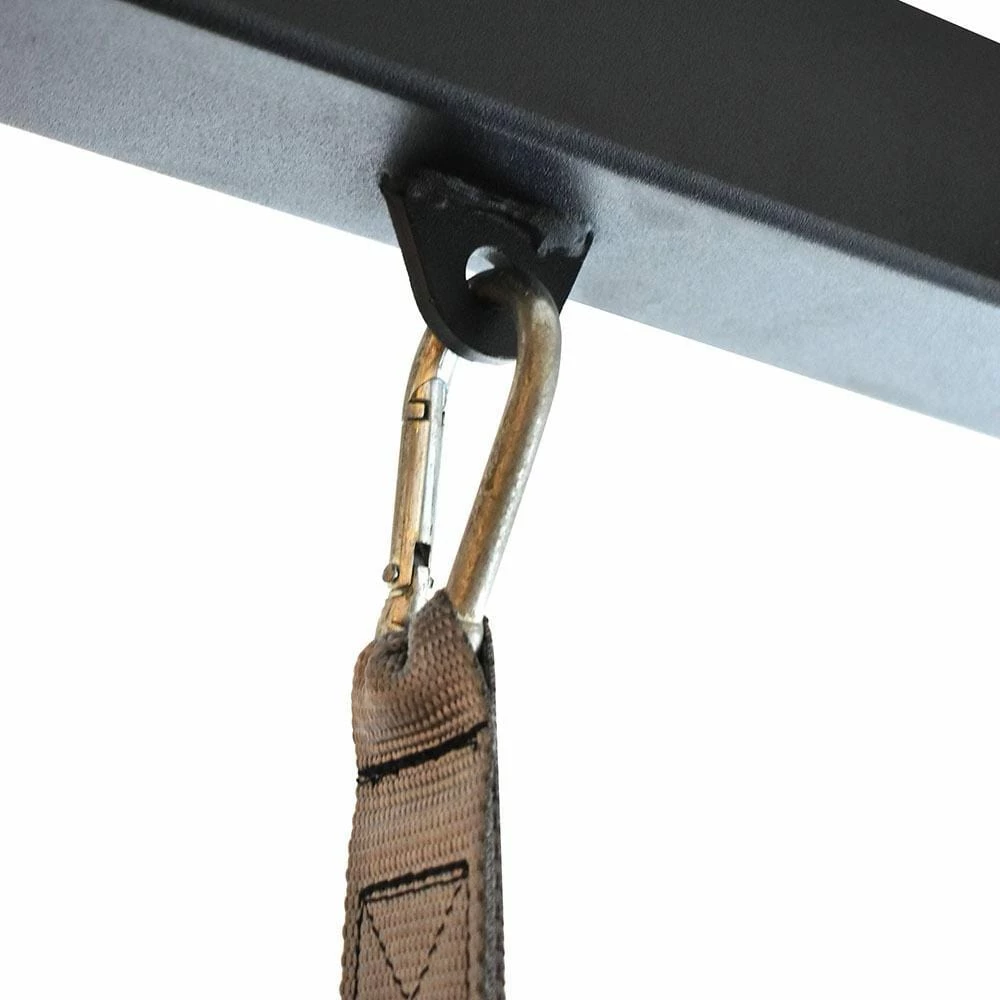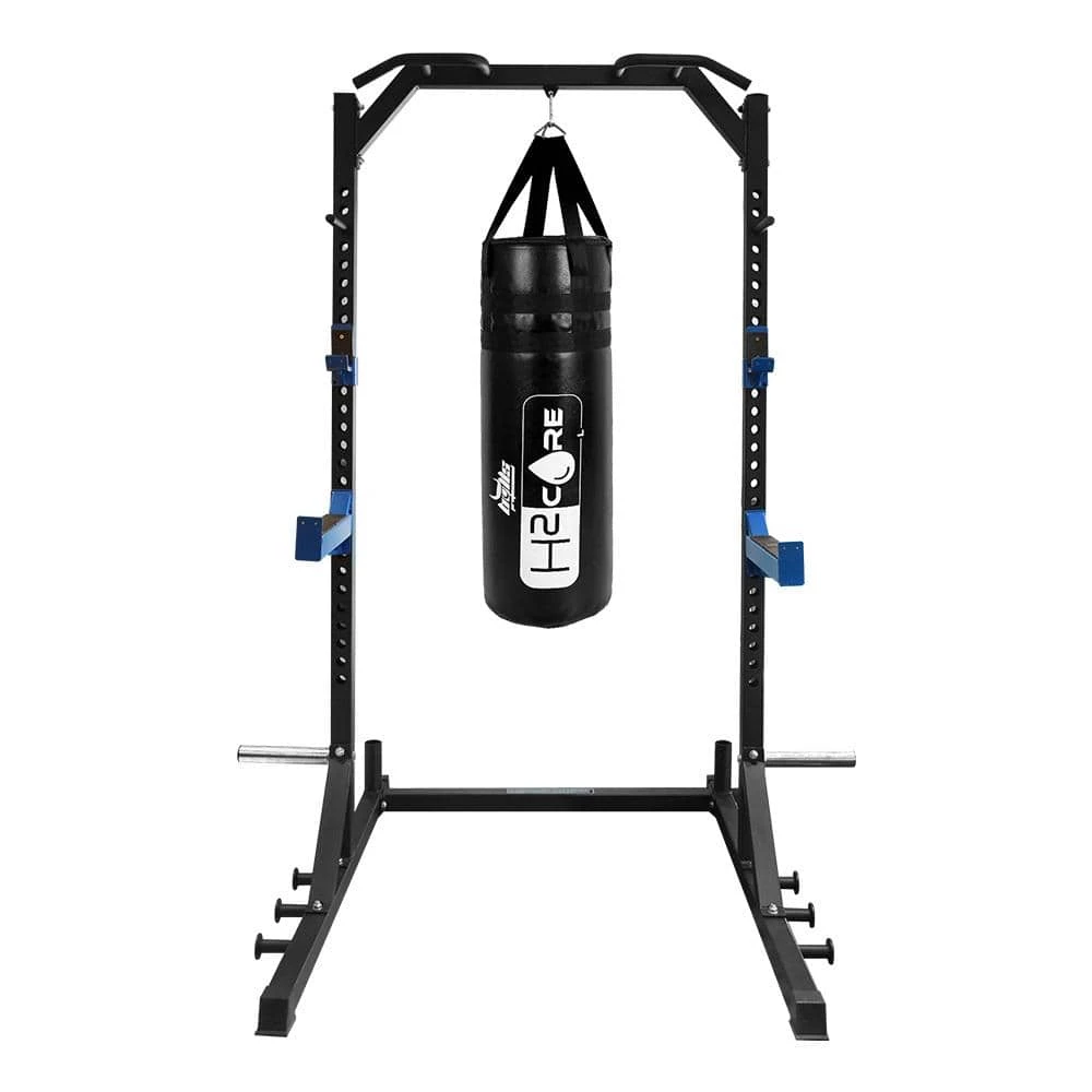 The sturdy and coated J-hooks on Element Fitness Half Rack Gym BSX can withstand heavy weights, avoiding falls and injuries even with additional plates. The Fitness Gym Rack also has spotter bars for safe weightlifting training, - PUNCHING BAG HOOK FOR TRAININGS