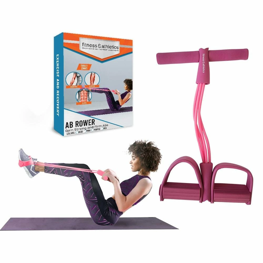 Gain strong and firm abs with Fitness and Athletics Ab Rower. Built with stretchable resistance tubes, it helps develop your core strength and tone your lower body. Perform a variety of exercises such as leg stretches, side twists and more for a full-body workout. Burn those belly fat with Fitness and Athletics Ab Rower.