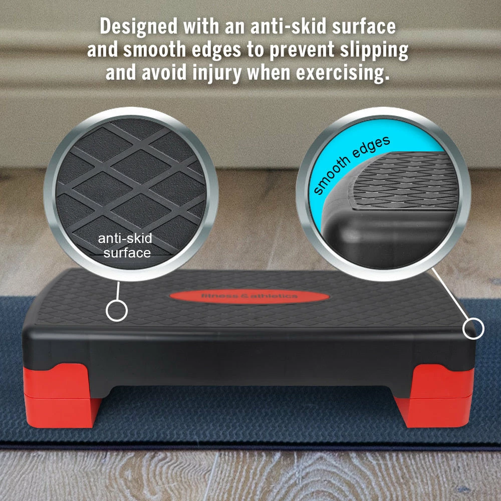 The Fitness & Athletics Aero Step Personal 2.0 is a great exercise step platform for your cardio, aerobics, and strength workout. With this simple tool, you can cover a lot of exercises that target your legs, arm, and core. - DURABLE AND SHOCK-ABSORBING STEP BENCH