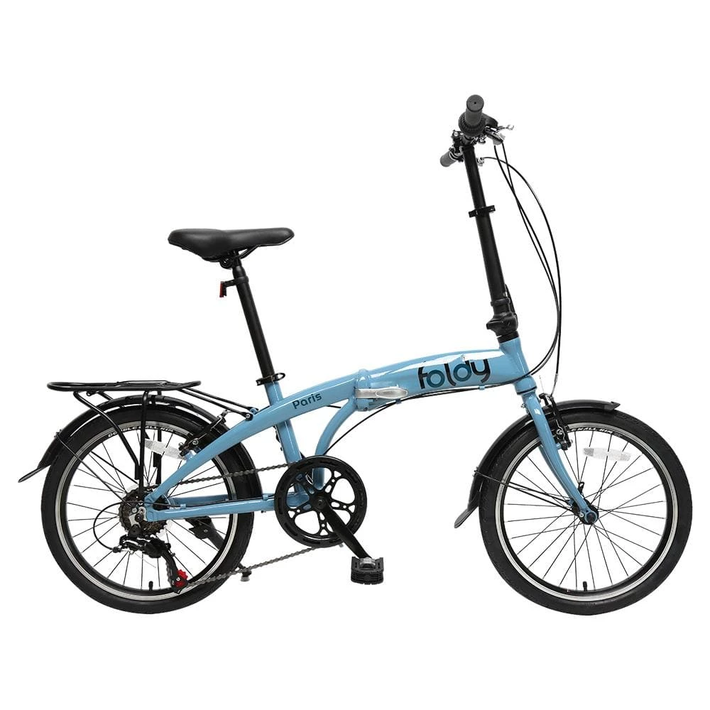 Perfect for convenience and style, Foldy Paris is great for those commuting to work or going for city trips. It has a built-in folding mechanism for convenient storage and transportation. Designed using modern geometry, it has a lightweight and durable alloy frame that only weighs 12.8 kg, which gives you a more comfortable cycling. Foldy Paris carries 20” wheels with less rolling resistance and v-brakes that keep riders in control. Included is a pannier rack to store your bags, as well as a stand to keep your bike upright when stopping. Also fitted with full-length mudguards to keep your bike looking good as new from ride to ride.
