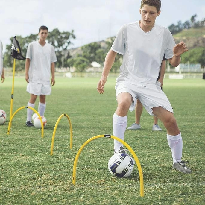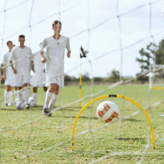 SKLZ Pro Soccer Training Arcs are great small-target training tools to practice passing accuracy and dribbling control. The sturdy arcs can also be used by goalkeepers as target goals to achieve precision with each kick. - WORKS ON ANY SURFACE