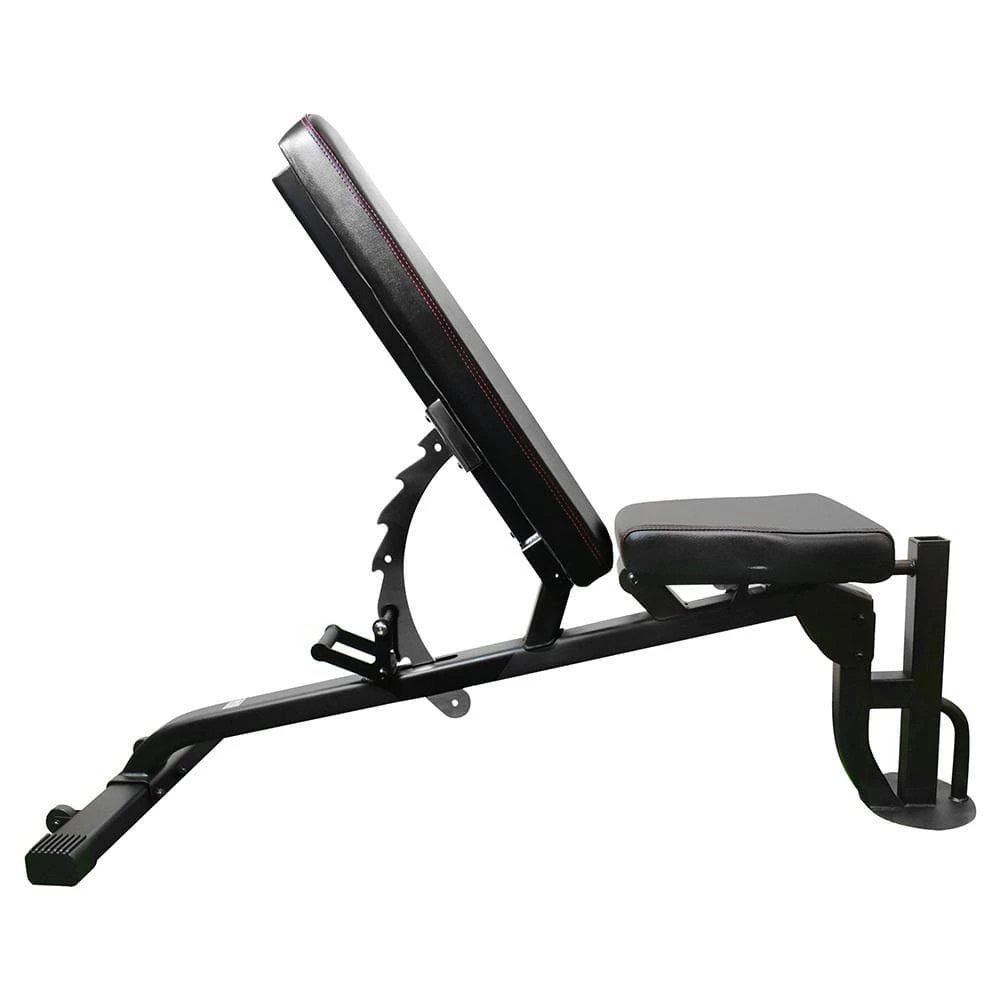 - Multiple position bench (flat, incline, and decline) for a full body workout