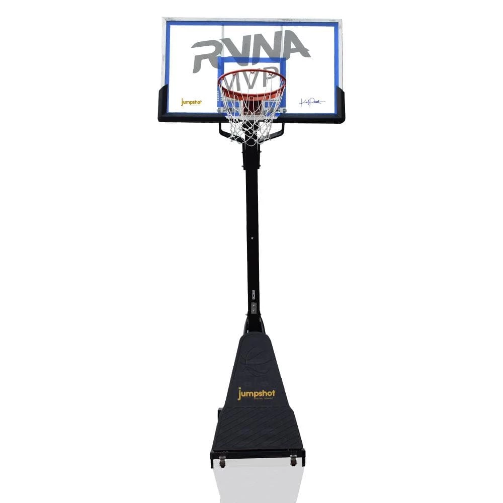 Practice and play like a pro with the RVNA MVP Basketball Hoop System. It features an adjustable height system (8 ft to 10 ft) so you can modify the right height for you. Integrated with built-in wheels, it allows you to move it easily and set it up anywhere. It also offers a ball assist board perfect for solo practice training. Level up your basketball skills with the RVNA MVP Basketball Hoop System.