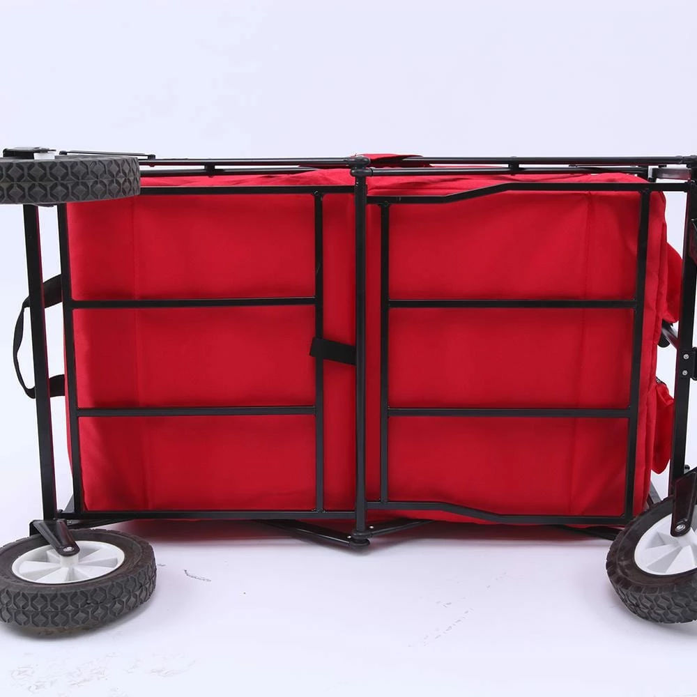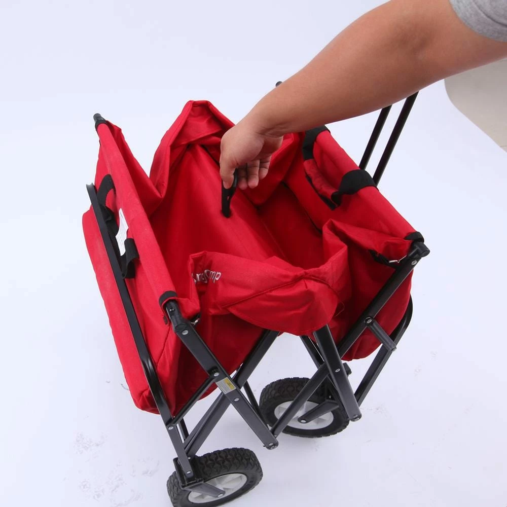 2. TELESCOPING HANDLE AND SWIVEL WHEELS: The handle has swinging design and four wheels is 360° swivel, so the cart can adapt a variety of terrain like grassland, beach, and garden.