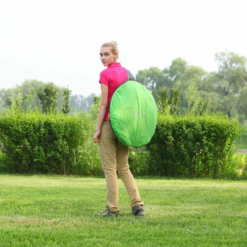 1. INSTANT. Pre-assembled Pop-up fiberglass poles for easy 10-seconds set up or tear down.
