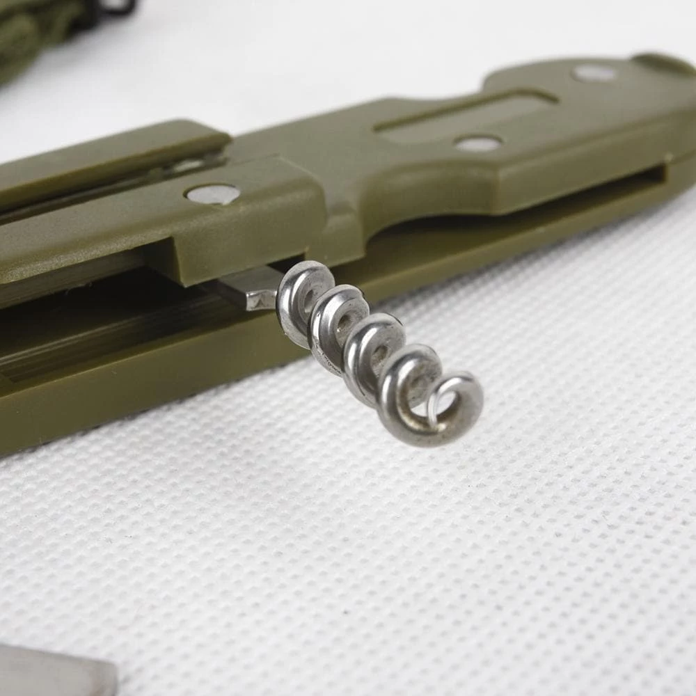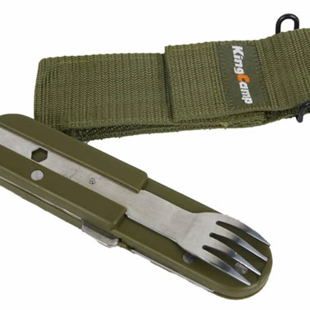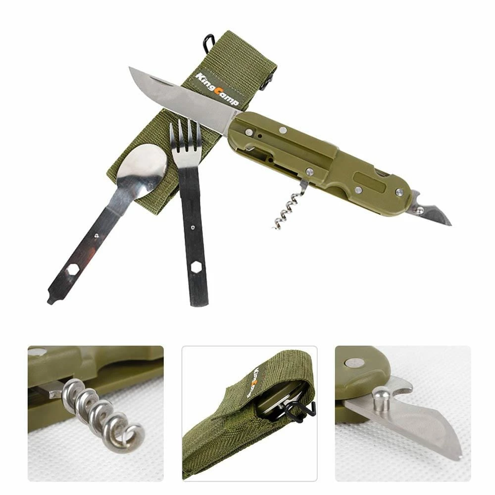 1. MULTIFUNCTION: This mess kit includes spoon, fork, cork screw, bottle opener and a ABS handle, so amazing.
