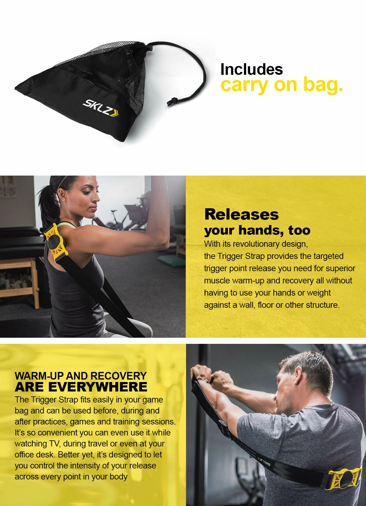 - Innovative, hands-free trigger point release tool