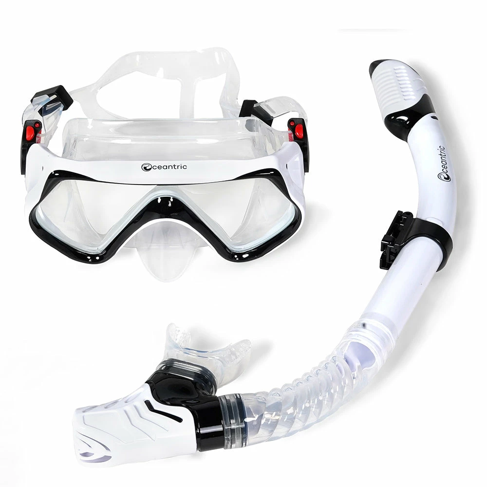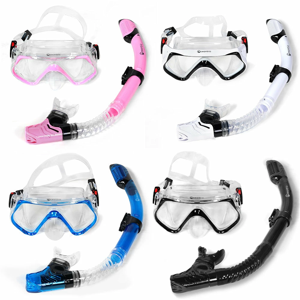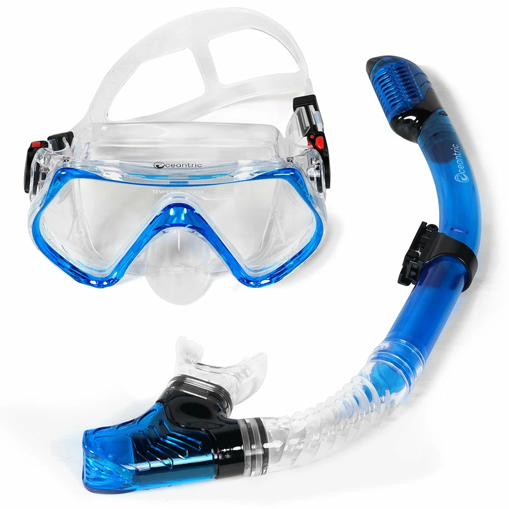 Suitable for water recreational activities, Oceantric Snorkeling Set 2.0 Adults is a wonderful snorkeling gear that provides clear vision and comfortable breathing underwater. Enjoy extended periods in the water with the tempered glass, double mask seal, dry top valve, and easy drain valve. The adult snorkel set fits most adult sizes and comes in four different colors.