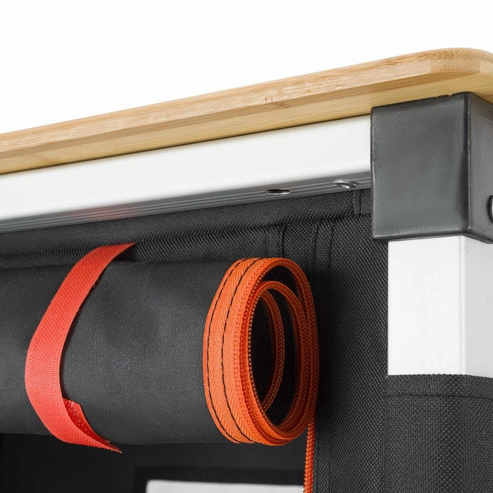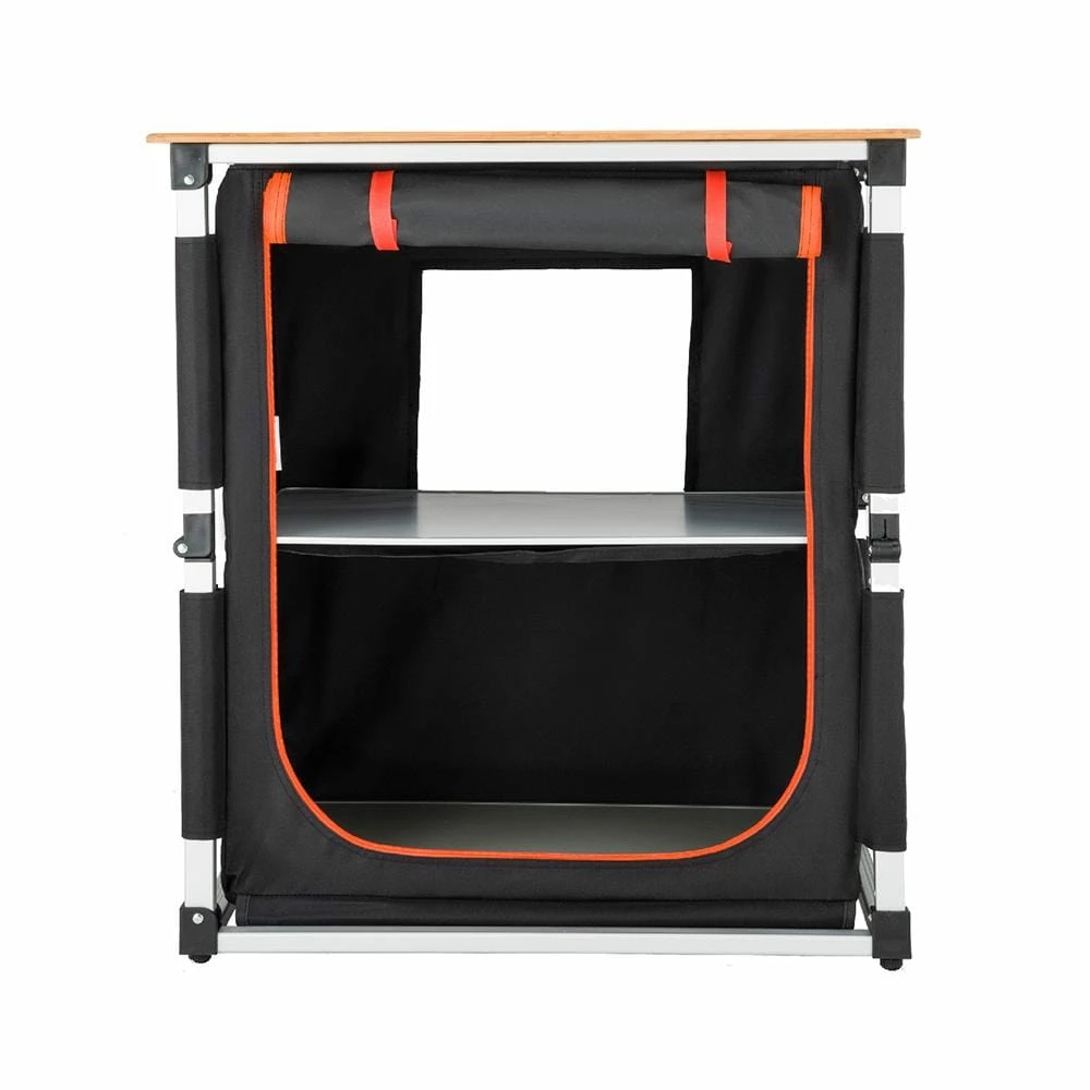 - MULTIFUNCTIONAL: This bamboo folding kitchen multifunctional cooking table is combined with locker, BBQ station and work station together, which can make the camping experience wonderful. It is multi-purpose and perfect for outdoor activities for picnic, camping, beach, patio parties, fishing, and more!