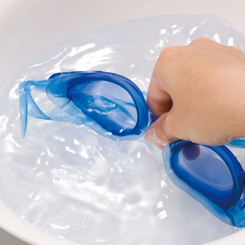- After using, rinse the swimming goggle under running water. To avoid scratching the lens, gently blot with a soft cloth and let it dry naturally