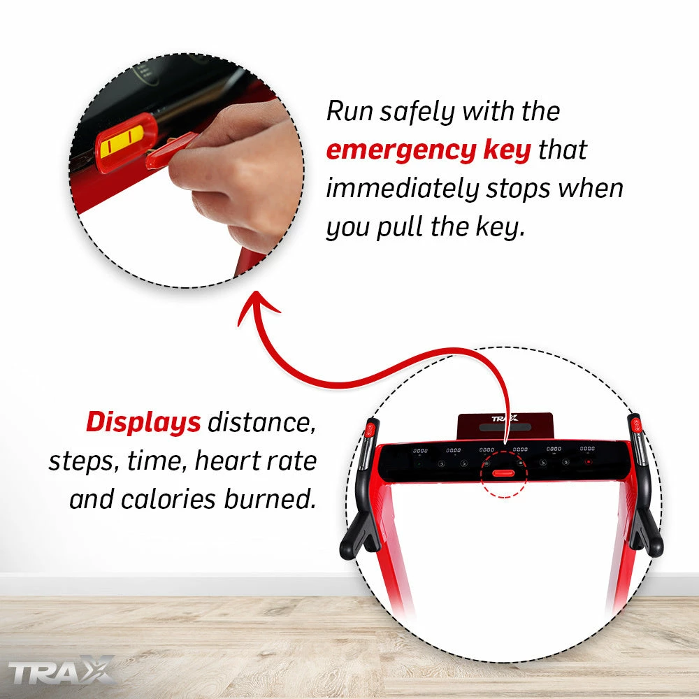 Let your treadmill match your lifestyle and personality with the three new, aesthetic colors of black, red, and pink of the Trax Ultra Slim Runner 2.0. - ADJUSTABLE INCLINE AND SPEED