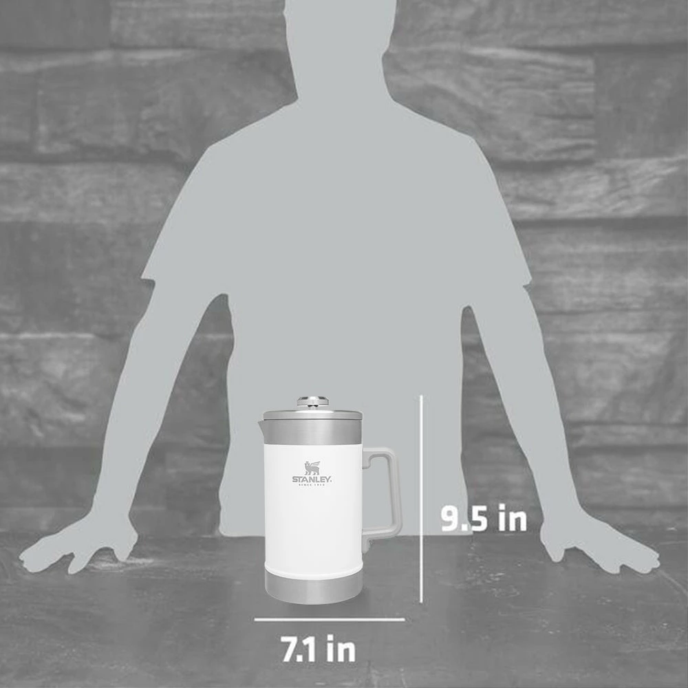 The Stanley Classic French Press coffee maker has double-wall vacuum insulation that helps keep your drink hot for 4 hours or cold for 24 hours when iced. Always have a great cup of coffee at hand.