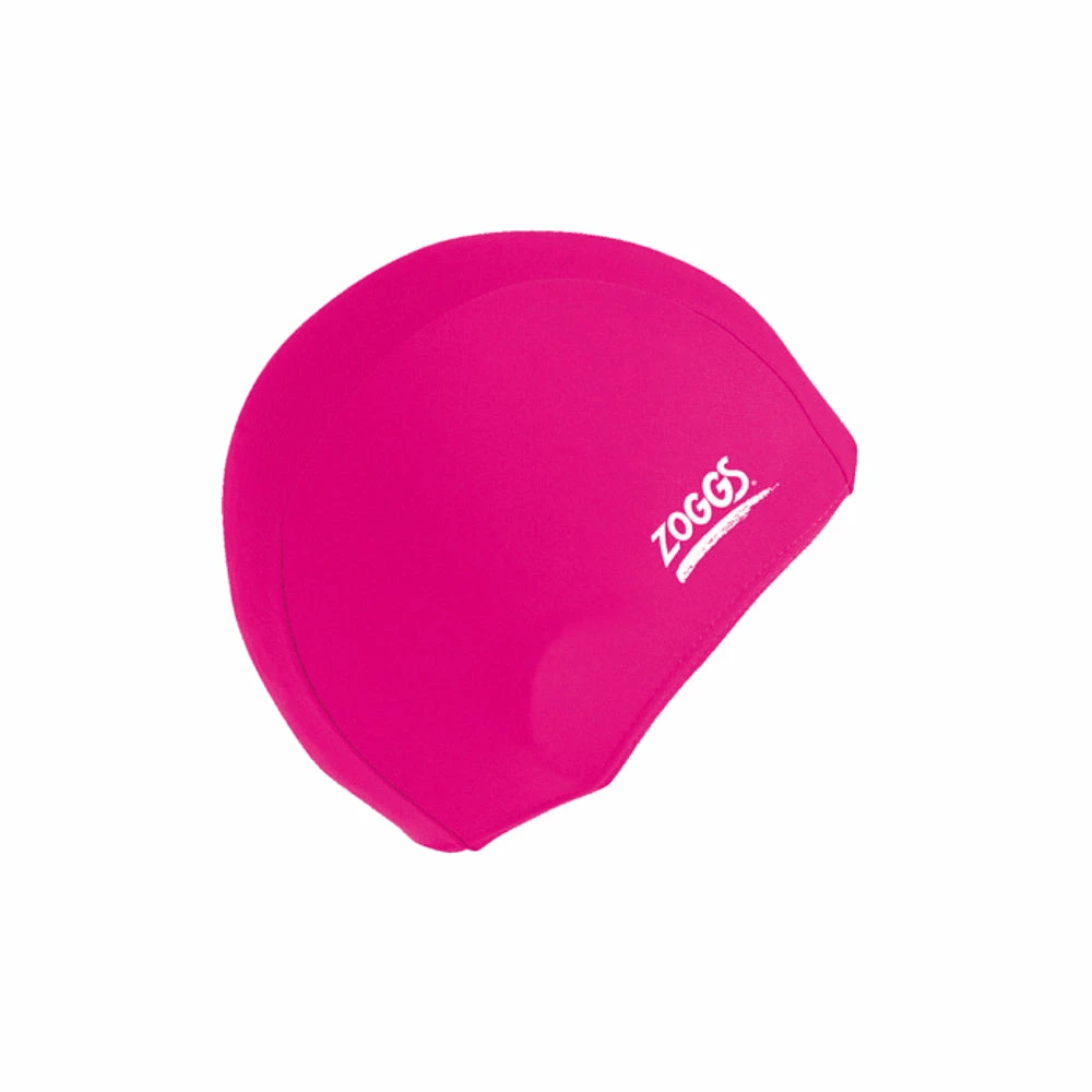 The Zoggs Stretch pool cap features an extremely soft and stretchy spandex fabric. It is 30% more stretchable than a traditional silicone cap.